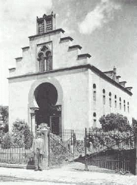 In diese Blütezeit der Gemeinde fällt auch der Bau der Synagoge, die vom bekannten Münchener Architekten Friedrich Gärtner entworfen und bald zum Vorbild für andere jüdische Gotteshäuser nicht nur in der Pfalz wurde. Weil der Bauplatz sumpfig war, mußten als Fundament 320 Stahlpfähle 4m tief in die Erde gelassen werden. Am 10.12.1832 war es dann so weit: Das 125m2 große und 10m hohe Gebäude war fertiggestellt.