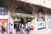 Nach einem Rundgang durch den überdachten Basar begeben wir uns auf den Weg zur Moschee Üc Serefeli Camii). Unser Blick fällt auf 4 verschiedene Minarette, von denen eines eine 3-stöckige Galerie hat, die dem Gebäude den Namen verleiht. Weiter mit dem Bus zur nächsten Moschee mit Armenküche und Krankenhaus. Sehr müde erreichen wir unser „Hotel“ in Edirne. Die Koffer schleppen wir eine steile Treppe hinauf und befinden uns auf einer breiten Galerie mit unverputzten Wänden. Das Hotel war früher eine Karawanserei. Sehr enge Schlafräume, kaum Platz für die Koffer! Nein hier dusche ich nicht! Zum Abendessen laufen wir in ein von Zafer ausgekundschaftetes Restaurant. Enge Treppen, enge Sitzplätze, das Essen – na ja. Durch den inzwischen einsetzenden Regen laufen wir zurück in den Gewölbekeller der Karawanserei und lassen bei Bier, Wein und Raki den Tag ausklingen.