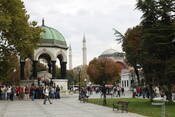 Nach ausgiebigem Frühstück kann der Bus gegen 8.30 Uhr starten. Es ist kühl und trüb, doch regnet es nicht. Unser 1. Ziel ist die „Kleine Hagia Sophia“ die wie viele andere Kirchen, nach der Eroberung der Stadt, in eine Moschee umgewandelt wurde. Zunächst gehen wir zum Hippodromplatz mit der Schlangensäule und zwei Obelisken. Am nördlichen Ende des Platzes sehen wir den Kaiser-Wilhelm-Brunnen (ein Andenken an den Besuch Kaiser Wilhelms II im damaligen Konstantinopel 1898).