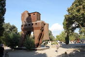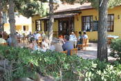 Am nächsten Morgen fahren wir ins 270 km entfernte Canakkale, unserem Ziel des 3. Tages. Zafer erzählt uns die Geschichte Trojas, da wir auf dem Hügel von Troja die Ausgrabungen besichtigen. Ein wunderschöner Blick bietet sich zur Küstenebene, dort kämpften sie einst: Hektor, Paris und Achilles. Die Fahrt zum Hotel an der Küste ist ziemlich spektakulär, das Hotel und die Zimmer sehr heruntergewirtschaftet, doch hat es einen Pool und Strand. Schnell ziehen einige „Deutsche“ die Badesachen an und ab ins Meer. Die Wassertemperatur ist ganz ok, doch das Wasser nicht klar und sehr flach. Schnell noch ein paar Bahnen im kalten Pool, Abendessen und gemütlicher Ausklang auf der Terrasse am Meer mit Raki für die Gesundheit.