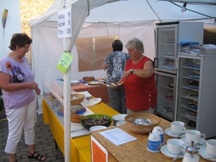 Fleißige Helfer vom Förderverein und Eltern der Kindertagesstätte „Regenbogenhüpfer“ und der Kirchengemeinde trafen sich donnerstags und samstagmorgens zum Aufbau des Verkaufstandes und der Sitzgelegenheiten, dass zum Festbeginn am Nachmittag und dem erwarteten Besucheransturm alles vorbereitet war. Am Samstag verkauften die Damen des Presbyteriums Waffeln mit oder ohne Sauerkirschen, sowie Kaffee und Kuchen. Den Spendern und Helfern sei hier schon Dank gesagt. Am Sonntag übernahmen der Förderverein und Eltern der Kindertagesstätte die Bewirtung und präsentierten ihre Arbeit an den Kindern.
