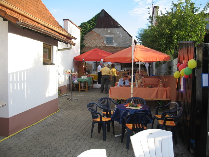 Auch dieses Jahr präsentierte sich die protestantische Kirchengemeinde Ingenheim-Appenhofen beim Klingbachfest am 7./8. August. Diesmal stellte uns Stefan Kaiser in der Mühlhofener Straße seinen Hof zur Verfügung. Der finanzielle Erlös sollte unserer Kindertagesstätte zugute kommen, die zurzeit erweitert und energetisch angepasst wird, um den gesetzlichen Vorgaben gerecht zu werden.