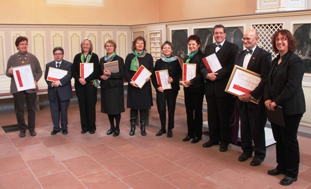 Der Vorsitzende des evangelischen Kirchenchores Ralf Piepenprink nahm noch Ehrungen langjähriger Chorsänger vor und überreichte den Jubilaren jeweils eine Urkunde. Dabei dankte er den Jubilaren für ihre Treue in den vergangenen Jahren, eine besondere Ehrung wurde Ilse Dahl für 50 Jahre und Werner Schmitt für 60 Jahre zuteil, ihnen wurde neben der Urkunde noch ein Schreiben der Landeskirche überreicht.