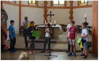 Nachdem die Jungen und Mädchen sich selbst unter viel Beifall persönlich der Gemeinde vorgestellt hatten, erinnerte Pfarrer Heinlein noch einmal an den vor etwa vier Wochen errungenen Sieg der Gruppe beim sogenannten „Konfi-Cup“ des Dekanats Bad Bergzabern, was erneut viel Applaus hervorrief.